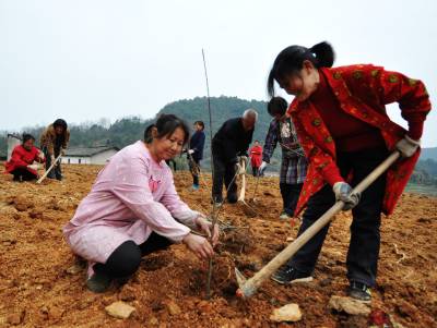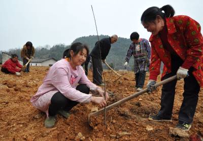 播种希望 3月13日,宜都市枝城镇回龙垱村民在栽种中华脆蜜桃。回龙垱村根据当地地理条件,今春全村共栽种中华脆蜜树120亩。