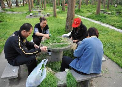 低碳环保的”开心农场””没事多到这里游几趟,人人都会长寿”。4日,潜江市民在江汉油田水杉公园内采摘野芹菜、野韭菜时发出感慨,大家在一起谈笑风生,体验现实版”开心农场”的乐趣。该园拥有全国面积最大、造林最早的人工水杉林,340亩犹如热带雨林景观的水杉林形成了天然氧吧,每天都有大批市民来到这里”吸氧”、”偷菜”。时下,不少潜江市民选择低碳绿色生活方式,返璞归真地融入自然,从节电、节气、节油等环节来改变生活。本报视界网吴燕军摄