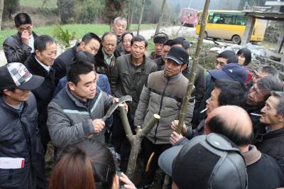 3月14日,省林科院研究员、核桃专家徐永杰博士,在鹤峰县燕子镇石龙洞村二组,为该镇100余名核桃种植户,讲解核桃树嫁接、管理技术。
