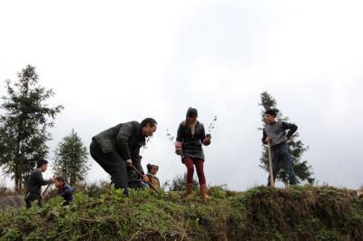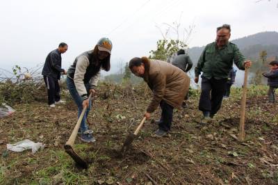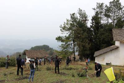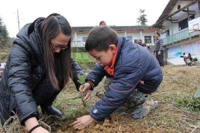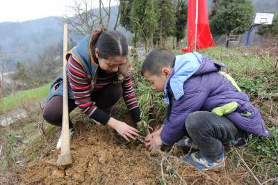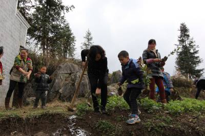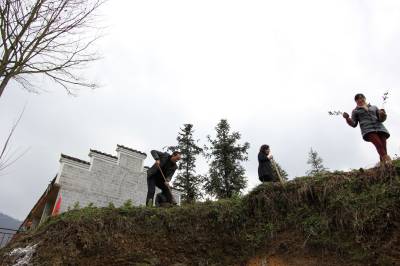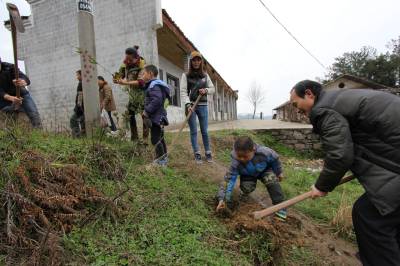 2014年3月14日,宣恩县文化体育局干部职工在珠山镇铁厂坡村小学校园傍与该校师生一同参加义务植树。