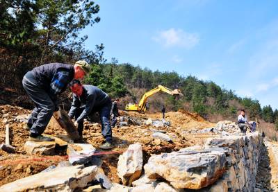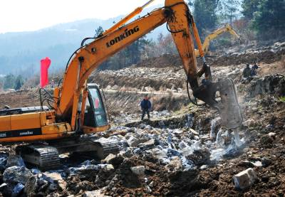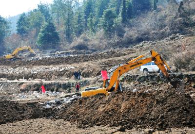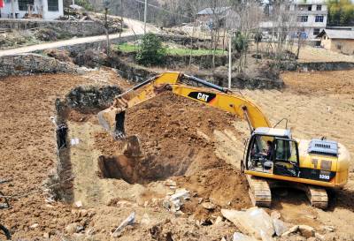 14日,巴东县茶店子镇朱砂土、西坪等村土地整理现场,挖机和民工在同时作业。 为了造福烟区群众,提高土地利用率,确保烟叶和粮食稳产增收,巴东县烟叶部门启动工业反哺农业及土地整理综合扶贫开发项目,投入2000余万元,对茶店子等全县5个烟区乡镇15个产烟村的9000余亩土地开展综合整理,保证整理区域土层厚度经沉降后达到50厘米,满足机耕需求。预计工期4个月,惠及群众2万余名。(本报视界网 梁勇 吴森奂 摄)13986846069