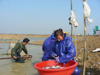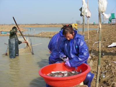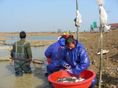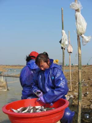 > 为鱼注射疫苗防病