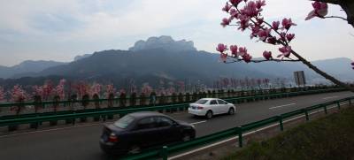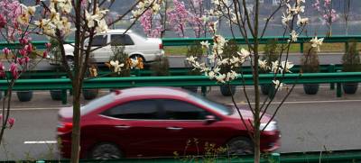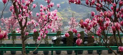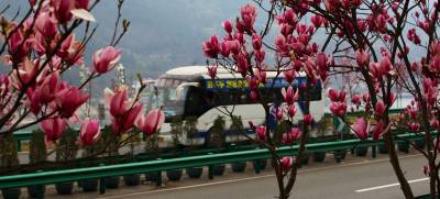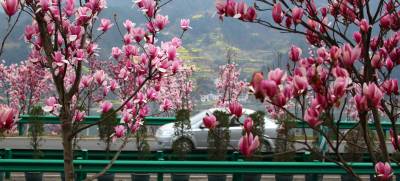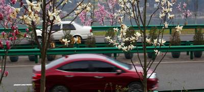 3月15日,阳光明媚,三峡坝区左岸江峡大道花枝招展,汽车穿行在画廊中,人们徜徉在春天里。