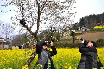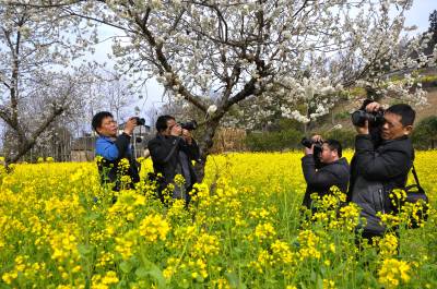 “醉”美春景如画 3月15日,在恩施市红土乡乌鸦坝油菜基地里,几名摄友走出户外享受明媚春光。 连日来,随着气温的不断回升,恩施市10多万亩油菜花竞相开放,把一个个村庄妆点得如诗如画,吸引不少市民走向大自然踏青赏花,尽情享受田园风光带给自己的乐趣,一派春意盎然。(本报视界网彭绍峰摄)