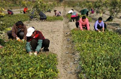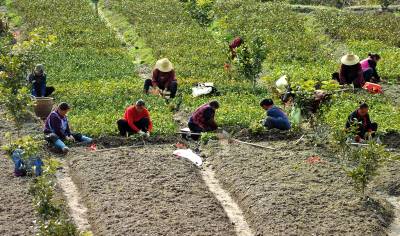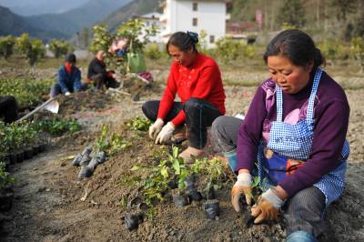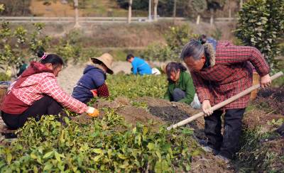 3月15日,宣恩县高罗乡黄家河村 “留守妇女春耕互助队”正在地里为农户假植即将移栽茶苗。