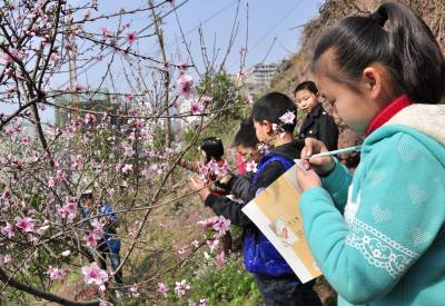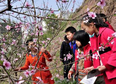 巴东:春天感受大自然(巴东:学生果园里学知识)