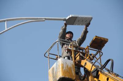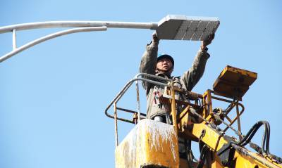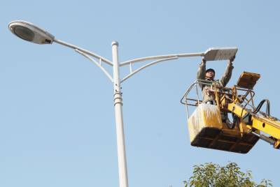 谷城县供电实施亮化工程扮靓县城 3月17日,谷城县供电公司路灯管理所职工正在城区主要路段,更换节能路灯。连日来,该公司路灯管理所精心组织施工,连续奋战,出动机械、人力,对县城西大街、银城大道、谷水路等路段实施亮化工程,全力扮靓县城。细心的市民近日在城区的夜晚感受到,更换后的节能路灯比以前更亮了,城区更美了。此次共更换路灯800盏,目前已完成半数。 本报视界网马明刚摄