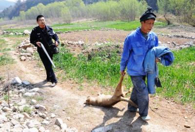 3月17日,郧县公安局谭山镇派出所出动两名民警将长期盗吃农户50多只鸡的2条野狗当场击毙,维护了一方社会安定,让两户受损农民终于出了一囗恶气笑开颜。
