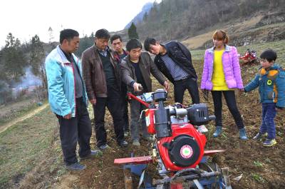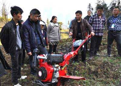 “春耕演示会”开到农民家门口 3月17日,在恩施市红土乡大岩村,农机员正在指导科技示范户使用微耕机。 近几年来,该市农机购置补贴实行“全价购机、定额补贴、市级结算、直补到卡”兑付方式,让农民实实在在的享受到了党的惠民政策。农机部门及时组织 “农机大夫”抢在春耕生产前深入田间地头、农家院落为农户检修耕整机等农机具,并宣讲农机具维护、保养使用知识,以确保农户顺利开展春耕备耕生产。(本报视界网彭绍峰阮正斌摄)