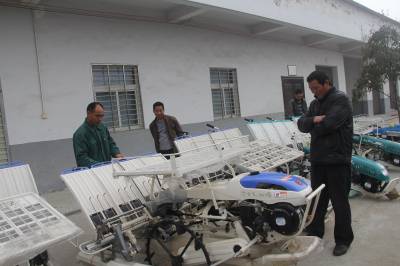沙洋县农民选购农机备春耕 3月17日,沙洋县曾集镇五洋农机专业合作社农机销售市场, 农民正在选购插秧机,为即将来临的的春耕生产做好准备。本报视界网何长青摄 通联:沙洋县新闻中心何长青13972901616邮编:448200