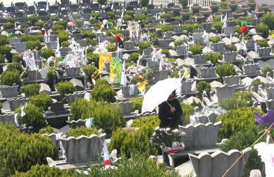 4月5日,市民在恩施市穿洞子公墓扫墓。从3月27日以来,恩施市共有7000余市民前往穿洞子公墓和恩施殡仪馆后面的公墓扫墓,市民外出扫墓没有发生重大的交通事故,也没有因燃烧香烛等引发山林火灾,以鲜花祭祀的市民逐年增加,实现了民政部门提出的”文明祭扫、平安清明”的目标。