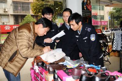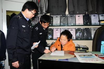 3月18日,郧县执法局城管大队三中队执法人员正在郧阳路向店主征求城市管理整改意见。在群众路线基夲教育活动中郧县执发局印发200多份"四风"建设征求意见表和对领导班子成员意见评价表,广泛征求城管,文化旅游,矿山,规划等方面客户和业主意见和整改建议。 特约记者周家山 摄