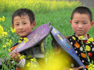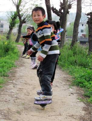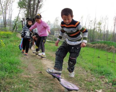 4月3日是清明节假期的第一天,十堰市郧县的一些小朋友看到父母选择低碳骑行单车野外出游,也踩上自己的滑板车跟随其后,尽情沐浴春日阳光,享受清明假日。(视界网签约摄影师曹忠宏摄影报道)