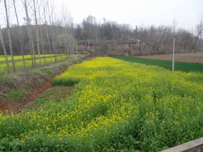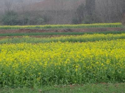 3月18日,在湖北郧县刘洞镇姚沟村,大片农田里的油菜花都已开放,整个村庄被染成了金黄色。(本报视界网 张文平 摄)