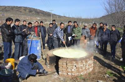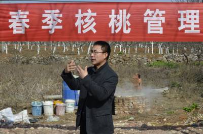 培训会上,核桃技术顾问孙红川对石硫合剂熬制方法、喷洒剂量及核桃病虫害防治技术进行系统讲解。孙红川说:“春季是核桃虫害和菌害萌发期,是防治核桃病虫害的关键时期,人工熬制石硫合剂可有效预防和消灭核桃黑斑病等多种核桃病害,掌握石硫合剂熬制技术每斤原液节约成本2元,每亩可有效节约管理费用300元。”