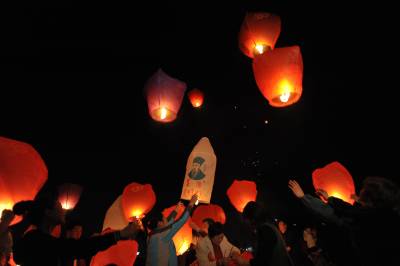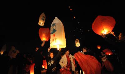 4月5日晚,800盏小型孔明灯和10盏大型孔明灯在襄樊鱼梁洲冉冉升起。这是诸葛亮隐居地湖北省襄樊市2010年”我们的节日.清明”主题系列活动之一孔明灯祈福放飞活动,此活动由市委宣传部、市文明办,市文化体育局、市群众艺术馆主办旨在大力弘扬中华民族优秀传统文化,展示襄樊人民爱国爱乡村、继承传统,缅怀先辈、文明向上的优秀品质。
