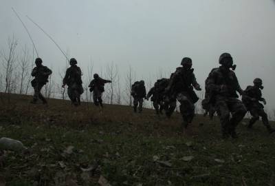 湖北某预备役舟桥团开展实战化拉动演练 19日凌晨,湖北某预备役舟桥团营区响起一阵紧急集合哨音,营区内, 50余名现役和预备役官兵全副武装整齐列队待命,该团40公里徒步负重行军实战化拉动演练由此展开。此次实战化拉动演练是该团探索实战化条件下作战规律,演练包括战前动员、情况研判、紧急疏散、转战陌生地域、信息对抗、隐蔽机动、复杂地域5公里奔袭等各种实战化拉动演练,通过真抓实练、补齐军事训练“短板”,达到与实战的无缝对接。(本报视界网刘银斌摄)