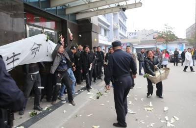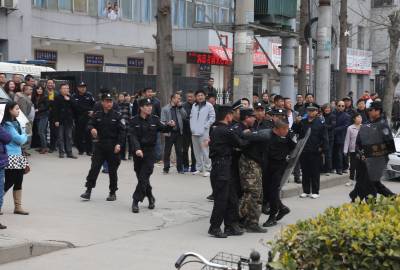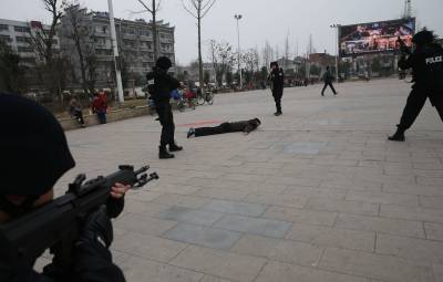 3月19日,老河口市公安局在市惠民医院举行“2014河谷1号”反恐实战演练,演练围绕一死者亲属40余人围堵惠民医院大门,殴打医护工作人员。110接群众报警后立即调警处置,并对事发路段实施交通管制。在处置过程中,死者亲属中6名刑满释放人员突然冲入人群,持刀砍伤执法民警和围观群众,造成多人受伤。公安人员迅速启动反恐处置预案,疏散围观群众,抢救受伤人员,实施现场警戒,抓捕违法人员,并对现场外围和老河口周边公路要道进行设卡布控,封锁疑犯可能外逃的通道。最后,3名暴徒当场被抓获,有名逃往抗战广场后的暴徒被围歼。