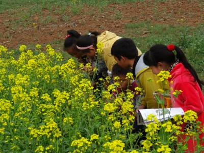 3月19日,湖北省十堰市郧县刘洞镇姚沟小学四年级一堂科学课上,同学们在老师的带领下,来到学校附近的农田里亲近自然“零距离”观察油菜花,认识油菜花的构造和各个部分特征。在观察实践活动中引导学生不断发现自己,发展自己,激励学生主动开发自己观察事物的潜能,使学生的观察经验不断得到丰富和升华,获得观察成功的喜悦。(本报视界网 张文平 摄)