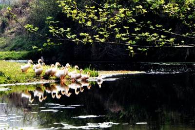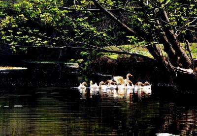 春天来了,万物复苏,一群小鸭水中喜戏好不自在。
