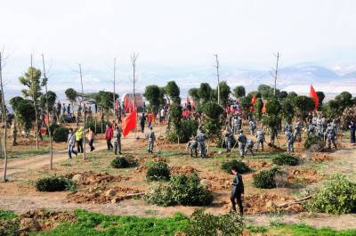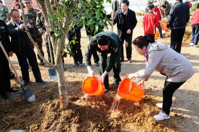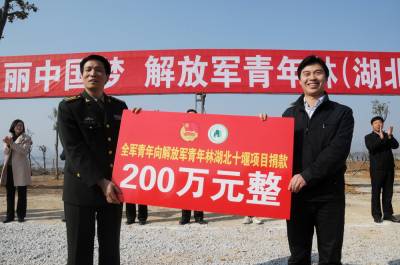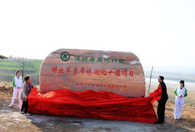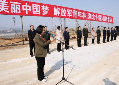 3月21日下午,保护母亲河,美丽中国梦。4000亩解放军青年林湖北十堰项目启动仪式,在十堰市汉江南岸的滨江新区举行,团中央,解放军总政青年局,湖北团省委,湖北省军区,十堰和郧县直属机关,驻军部队,武警部队,民兵和大中小学学生等2000多人参加了解放军青年林的植树造林活动,共植下2万多株各类风景和绿化树木,此次青年林项目共捐资200万元,其最终目的是涵养水源,防风治沙,净化空会,建设汉江生态带,确保汉江两岸水土保护和一江清水送北京。
