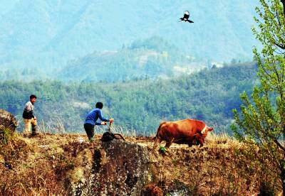 当天,巴东县东瀼口镇牛洞坪村水稻种植户纷纷借助牛儿和铁牛机器耕地整田,建温棚,准备育苗、移栽大田。据了解,巴东全县有水田面积2.8万亩,年产水稻1800余万公斤,通过深加工,农民年销售大米收入约9000万元。(本报视界网 梁勇 摄)13986846069
