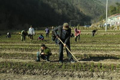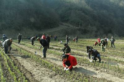 十八里长峡自然保护区管理局计划今年投资500万元建设珍稀植物园100亩,现已完成春季栽植工作。图为正在栽植一级保护植物红豆杉的场景。