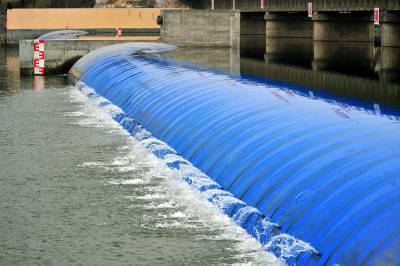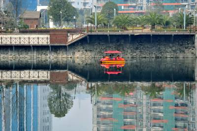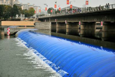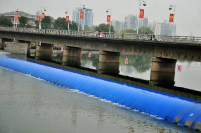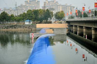 为应对葛洲坝水库消落区枯水季节河床裸露影响水环境质量问题,宜昌市夷陵区在葛洲坝水库消落区的长江支流黄柏河夷陵城区段兴建的橡胶生态坝近日建成投入使用。该座生态坝共投资3000多万元,可以对黄柏河河道水位进行适时调剂,洪水期能塌坝泄洪;非汛期能立坝挡水,使水位整体提高2.5米,有效增加了上游河道生态流量,常年保持一湖清水景观。生态坝同时拦住了沿河两岸杂草和垃圾不再流入长江,大大改善了沿河水域水质环境。 本报视界网 张国荣 摄