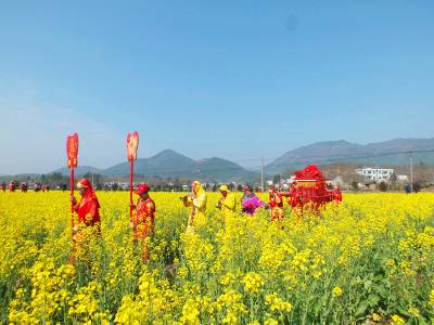 白庙河镇油菜花节让八方游客流连忘返。3月22日,阳光明媚,罗田县白庙河镇沿罗九生态旅游公路旁的八千亩油菜花竞相开放,茫茫的花海里游人如织,锣鼓喧天,歌声飞扬,一队迎亲的花轿在花海里穿梭,这是该镇首届油菜花节的热闹场面。开年以来,白庙河镇为了有效推进生态旅游产业的发展,创建山区特色旅游名镇,先后启动“秀美山乡白庙河摄影大赛”、“清洁家园,我在行动”和“全民植树,绿满山乡”等活动,并组织部署“油菜花节”、“板栗节”、“红果节”等节会,以节会宣传推荐白庙河的生态旅游产业,促进农民增收。