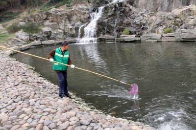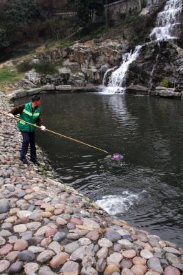 3月22日,屈原故里国际文化旅游区内的环卫工人周宗玉正在加紧清漂。据悉,为创建省级文明县城,秭归县各大景区积极响应县委、县政府的号召,大力开展“洁净迎客”活动,对环卫工人实行严格的绩效考核,收到了明显效果。 本报视界网 王爱平 摄 工作单位:秭归县民政局 联系地址:秭归县茅坪镇丹阳路11号民政大楼604办 邮政编码:443600 联系电话:13487250823 QQ号码:248545598 电子邮箱:wangaiping19731127@163.com