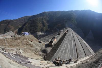 龙背湾水电站大坝为混凝土面板堆石坝,最大坝高158.3米,坝顶高程524.3米,水库正常蓄水位520米。目前,龙背湾水电开发公司按照工程建设的时间节点,实行倒排工期,按月、按周、按天控制工程进度,奋力冲刺下闸蓄水。