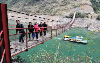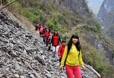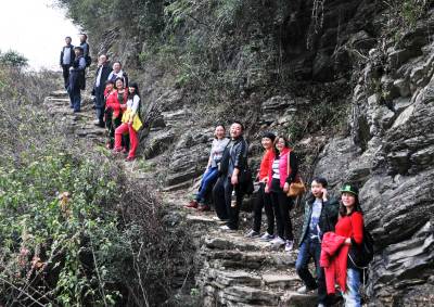 22日,徒步旅行者行进在巴东县万福河及大面山上。 当天,巴东县财政局部分职工及家属组成徒步队,从信陵镇火焰石村江边徒步走到县城,里程约15公里,耗时3小时。据了解,为了欣赏巫峡口雄伟、险峻的自然风光,锻炼身体,磨练意志,韩国、加拿大及国内徒步游爱好者经常来到巴东,翻山越岭,享受徒步旅游带来的乐趣。(本报视界网 梁勇 摄)13986846069