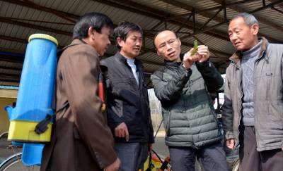 “根据天气预报,下周有雨,大家要抢抓晴好天气打药,发现中心病株,要及时将病株拔除,并带到田外销毁……”3月21日,云梦县农业局“土豆专家”在隔蒲潭镇大余村万亩马铃薯基地向农户讲解如何防治晚疫病及田间管理,现场解答农户在生产过程中碰见的问题。由于去冬温度偏高,今春雨水偏少,该局农业技术推广中心根据马铃薯晚疫病预警系统运行监测情况,结合品种因素、历史资料、天气预报等因素综合分析,及时组织技术人员深入田间地头,向农户发布预警信息,提出防治意见,确保全县夏收马铃薯丰产。