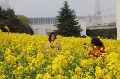 3月23日,丹江口大坝右岸油菜花迎春绽放,吸引了许多市民前来踏青赏花拍照,感受明媚的春光。本报视界网 钱芹 摄 详细通联:丹江口职业技术学校办公室:钱芹 邮政:442708 手机:13477990812