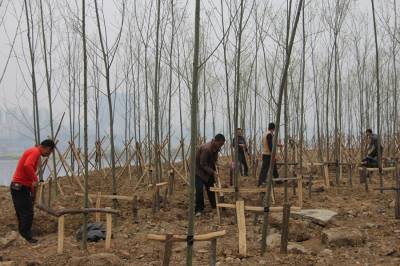 3月23日,工人们正在南水北调中线工程施工大桥下游的江心岛上平整林地,准备栽种草坪。截止3月中旬,该市已在汉江左、右两岸景观带栽植池杉、垂柳、河柳、水杉、栾树、湿地松等245个品种树42000余株。 本报视界网 钱芹 摄 详细通联:丹江口职业技术学校办公室:钱芹 邮政:442708 手机:13477990812