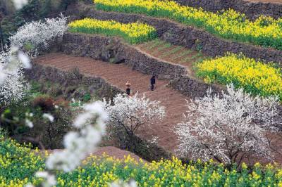 春到田间 3月23日,三峡库区巴东县信陵镇中元子村村民在田地里耕作。 近日,地处三峡库区的巴东县天气晴好,田间一派春色,当地农民抢抓有利时节开展春耕生产。本报视界网:梁斌 摄