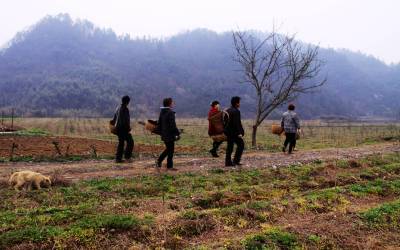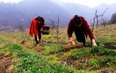3月23日,“留守”妇女们正在田间采收薇菜。据悉,薇菜为蕨类植物紫萁的嫩叶柄,又名紫箕,俗称大巢菜、野鸡头、扫帚菜,营养丰富,被视为“山珍”。2008年,秭归县农民鲁永钿投资60万元,在海拔1000余米的该县茅坪镇乔家坪村建成300亩野生薇菜种植基地,田间套种木瓜,并注册成立土特产贸易公司,采用“公司+农户”的模式发展薇菜产业。从2010年开始,鲁永钿的公司与湖北三峡职业技术学院联手,开始研发薇菜新产品,提高薇菜附加值,更好地带动了高山老百姓增收致富。