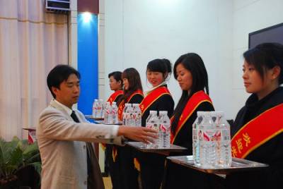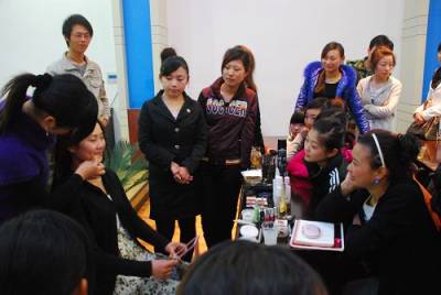 为期一个月的建始县业州镇首届农村劳动力转移(万氏酒店服务员)培训3月5日开课,目前已接近尾声。60名员工经过严格训练,开始进入酒店实际操作。此次培训从理论学习入手,通过军训培养学员的团结协作精神(图一);请来专家传授化妆美容知识,做到端庄大方(图二);在行家指点下演练托盘技巧(图三)。每一堂课,每一个环节,都讲到位,练到位,实行课岗对接,全面提高农村劳动力就业水平和素质。今年的民工荒,”荒”在用工环境,同时也”荒”在劳动力素质。在生产力高速发展的今天,劳动者自身素质低下,无疑将被社会淘汰。业州镇开展的农村劳动力转移培训从岗位需求出发,理论与实际相结合,全面提高劳动者能力和素质,值得借鉴。