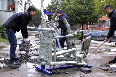更换娱乐设施 3月25日,宣恩县园林管理局工人们正在将破旧、老化、损坏的公共设施进行抢修和及时更换。 据悉:为确保市民娱乐设施完整安全,该县园林管理局已将城区破损、老化、损坏的公共设施全部实行更换和维修。 (本报视界网:罗清峰、黄文江摄)