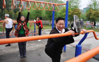 潜江老年人低碳生活作表率6日,潜江市南门河游园广场的晨练人群中,几乎难见年轻人的身影,一群群老大爷、老大妈在忙着压腿、吊臂、跑步、练气功。这些朝气蓬勃的老年人养成了早睡早起,锻炼身体的好习惯,从艰苦岁月中走过来的老人们平时生活节俭,用电用水精打细算,出门总爱蹬自行车,购物提着环保袋。在倡导低碳生活的今天,老年人给年轻人做出了表率,成为低碳生活的主角。本报视界网吴燕军摄