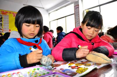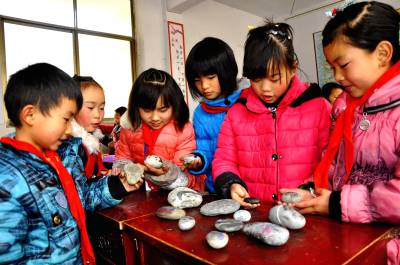 今年以来,该校把卵石画创作纳入校本课程,以“美丽家园、美好生活”为主题,由美术教师作课外指导。学生们将卵石搬进课堂,根据鹅卵石的形状,充分发挥自己的想象力和创作能力,把自己的才华展现在不起眼的石头上,使石头变得栩栩如生,赋予石子以生命力。创作出以人物、鸟兽、花草等为内容的卵石画作品,从这些画作中,可以看出学生热爱生活、热爱学校、热爱祖国的高尚情操。(本报视界网彭绍峰摄)