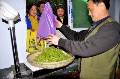4月7日,笔者在恩施市富之源茶叶有限公司看到,茶农正在争先恐后出售清明节后鲜茶叶。据悉,该公司遵守承诺,实行诚信收购,严把收购质量关,清明节后仍执行节前收购价,每公斤70元,确保茶农增产增收,从而拉动了特色产业的发展。目前,己落实茶叶建园面积800亩。(视界网签约摄影师彭绍峰摄)红土乡政府13329820218