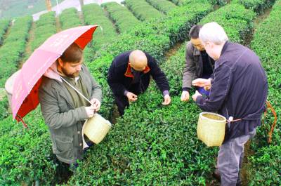 3月24日,瑞典茶商Marcus Schnlz来到宣恩县万寨乡伍家台村,考察茶叶基地建设,并商谈茶叶出口事宜。 当天,Marcus Schnlz参观了该村的茶叶基地、生产规模及市场销售等情况。据了解,宣恩县伍家台村现有茶园3600亩,茶叶加工企业32家,其中规模以上企业2家。目前,茶产业已成为该村支柱产业,成为当地群众增收致富的主要经济作物。(视界网 刘友春 刘青 摄)