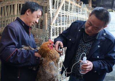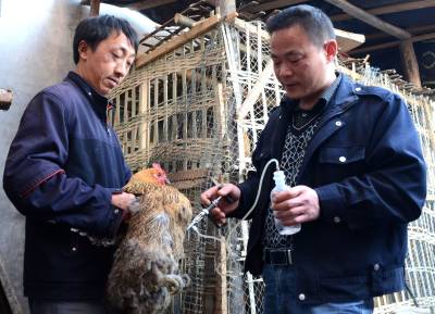 3月26日,恩施市舞阳坝街道办事处动物防疫员在为该办核桃坝村养殖户的饲养动物注射疫苗。