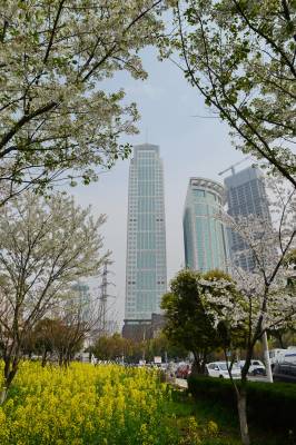 2003年,该区政府和园林局,在这繁华寸土如金的金融十字街西北湖旁,放弃杜绝了房地产开发的巨额回报,而是更注重造福百姓,进行湖边绿化美化,经过园林干群的不懈努力,到今年止己种植600余棵樱花树,有早中晚期、白红浅红绿4个花色品种的樱花,己成为该市第二大规模的樱花林,每年到樱花油菜花盛开的季节,这里成为居民群众踏青赏花的都市田园风光,成为他们幸福欢乐的海洋。