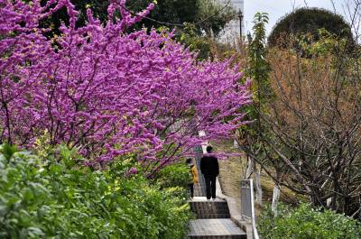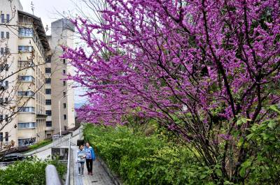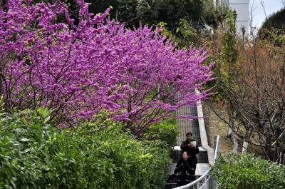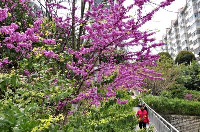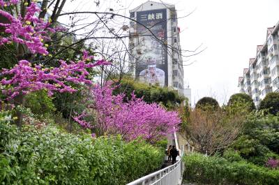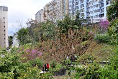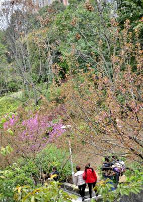 湖北巴东:城区森林景观受市民追捧 3月 25日,市民正在湖北省巴东县城区信陵镇西壤坡小区内的小森林里游玩、赏景观花,体验自然森林景观的愉悦。