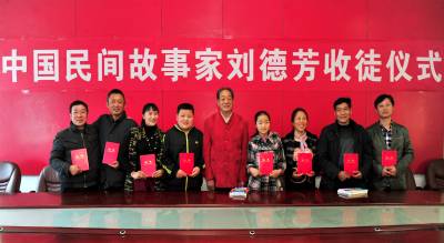 2014年3月28日,“中国民间故事家”刘德芳收徒仪式在“湖北省民间故事之乡”宜昌市夷陵区下堡坪乡举行,刘德芳现场将当地8名民间故事传讲爱好者接收为徒弟。这是当地首次正式举行的刘德芳收徒仪式,8名徒弟年龄最大的50岁,最小的两名学生均为13岁。刘德芳通过对这些徒弟进行辅导,将更加规范有效地对民间故事进行保护传承并发扬广大。