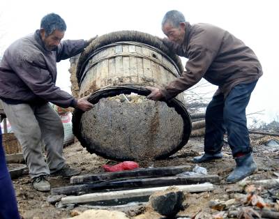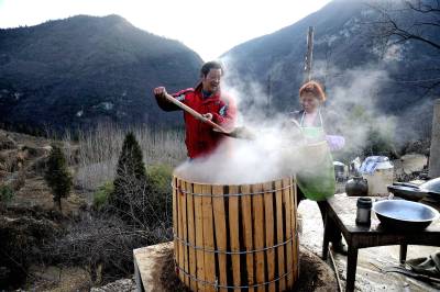 随着大量农村劳力外出务工,掌握农家烤酒技艺的人越来越少,加之其利润空间小,粮耗高、能耗大,在现代酿酒工艺大规模普及、白酒生产工业化程度日益提高的现实下,农家烤酒这项民间技艺面临消失的危险。(本报视界网 吴成林 摄)