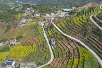 3月28日,拍摄到的巴东县溪丘湾乡黄家包村一角。别致的民居、齐整的梯田、金黄的油菜花、碧绿的柑橘树、蜿蜒的水泥路,装扮出一个五彩缤纷新农村。