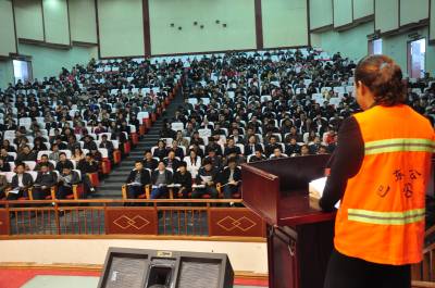 3月28日,巴东县会务中心座无虚席,800多名党员干部正在聆听该县党的群众路线教育实践活动专题报告团成员全国“最美养路工”张祚琼,现场讲解她的典型事迹。